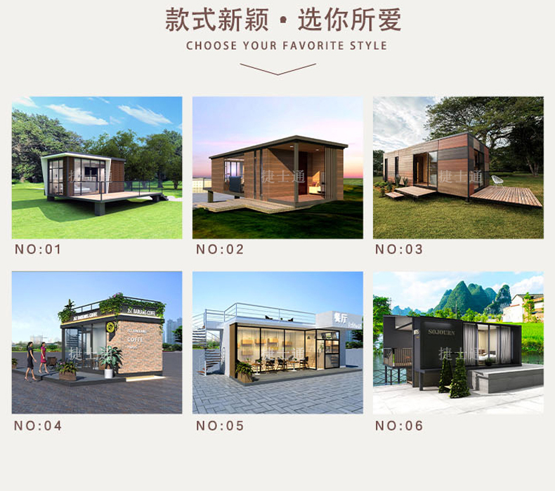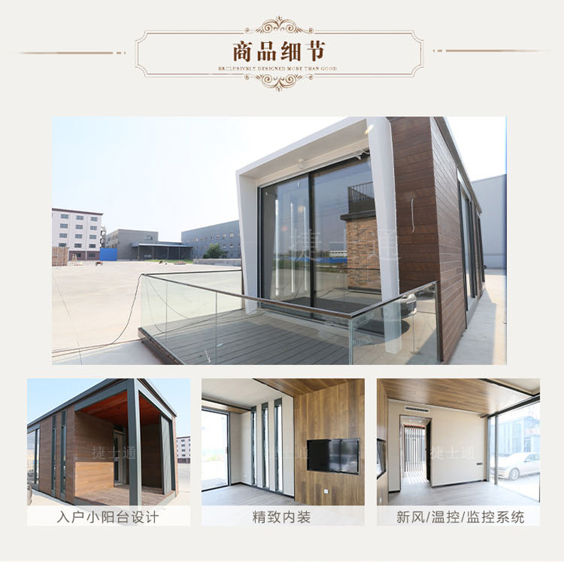 標(biāo)準(zhǔn)配置 :外墻:優(yōu)質(zhì)金屬雕花板/氟碳漆板/纖維水泥板可選。纖維水泥板有好的防水性能,在衛(wèi)生間,浴室等高濕度的地方,仍能保持性能的穩(wěn)定,不會(huì)膨脹或變形。 內(nèi)墻:復(fù)合木地板/纖維板水泥板......龍骨:優(yōu)質(zhì)鍍鋅方鋼龍骨焊接。室內(nèi)吊頂:優(yōu)質(zhì)PVC吊頂/納米纖維板可選。底座:鍍鋅方鋼焊接加黑竹木板模板。室內(nèi)地板:優(yōu)勢(shì)防滑鋁板/防滑瓷磚可選。門窗:斷橋鋁門窗、防盜門 。其他:照明、配電系統(tǒng)......可根據(jù)客戶需求進(jìn)行特殊定制。聯(lián)系電話:15822882616,公司網(wǎng)址:m.gogolooks.com。